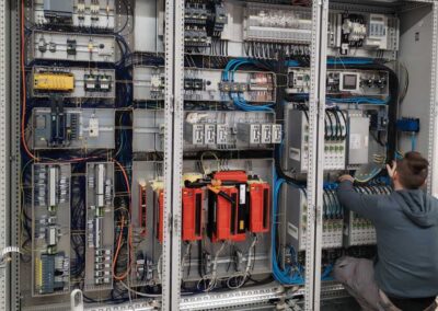 - OŽIČENJE I INTEGRACIJA KOMPONENATA – stručno povezivanje sklopki, kontaktora, PLC jedinica, sigurnosnih i upravljačkih elemenata